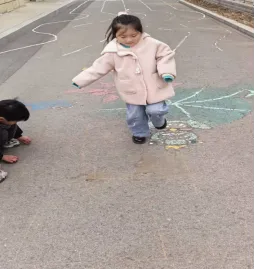 “我妈妈说她小时候玩跳房子,在地上画格子就可以玩!”锘锘高高举起小手。