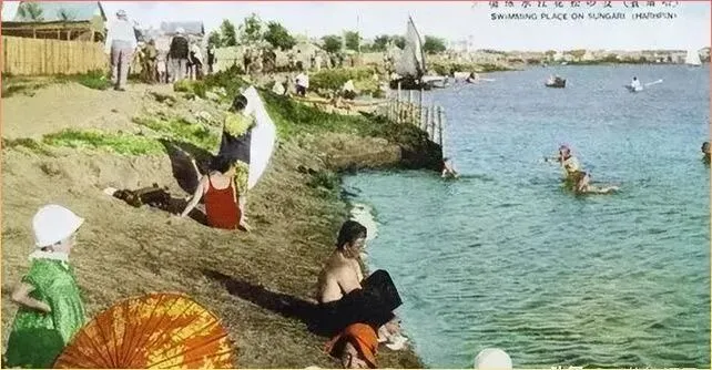 这张照片.可真是.让人眼前一亮.!清澈.的.江水,岸边还有.人在嬉戏玩耍,穿着花花绿绿的衣.裳,.撑着.洋伞。可能现在的年轻人看着觉得稀奇,但在.那个.年代,能到江边玩上一天,已经算是最奢侈的娱乐活动了.。