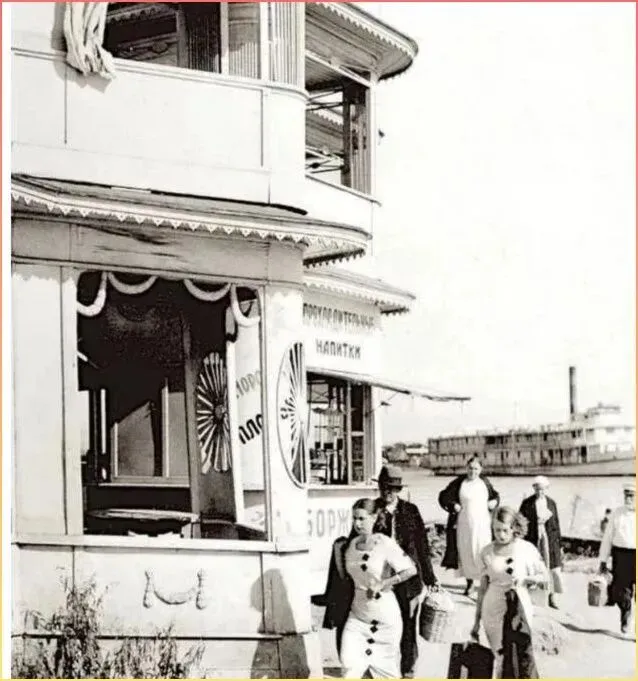 照片上的这个圆形建筑.,装饰得挺洋.气,.门口.还站.着几个穿制服的.人。这应该.是某个重要码头的.入口处,那年头.坐船出行可是大事情,不是谁想坐就能坐的。