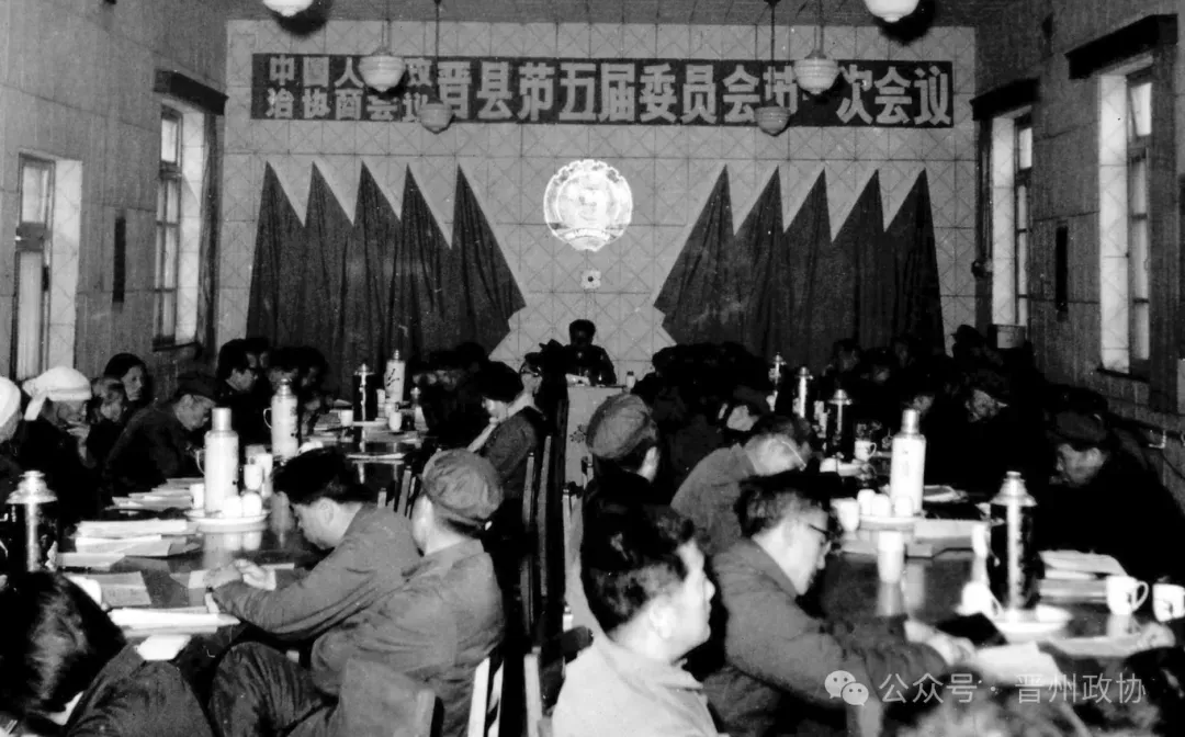 成立人民政协。在晋县拨乱反正的众多成果中,建立人民政协无疑是一个大事件。1949年11月至1953年10月,政协职能一直由县人民代表大会代行,共召开四届。1983年3月,决定成立政协晋县委员会。3月31日至4月5日,召开了政协晋县五届一次会议,政协晋县委员会正式诞生。从此,政治协商制度开始进入晋县政治生活。图为政协晋县五届一次会议会场。