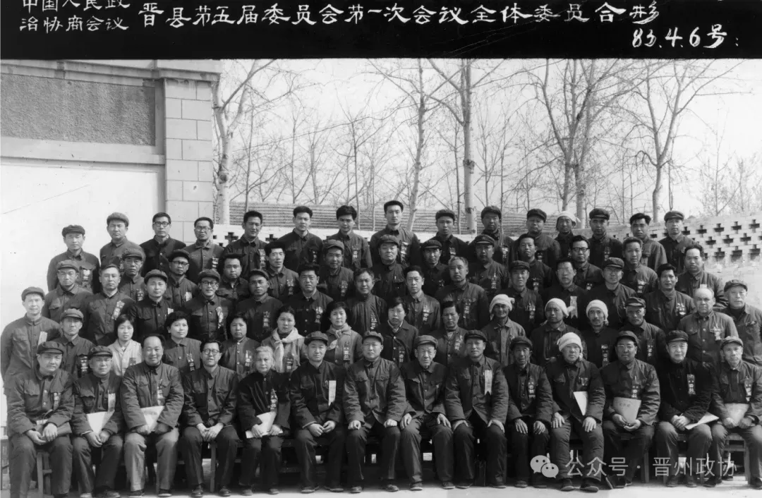 出席政协晋县五届一次会议的全体委员合影。他们是晋县第一批政协委员。