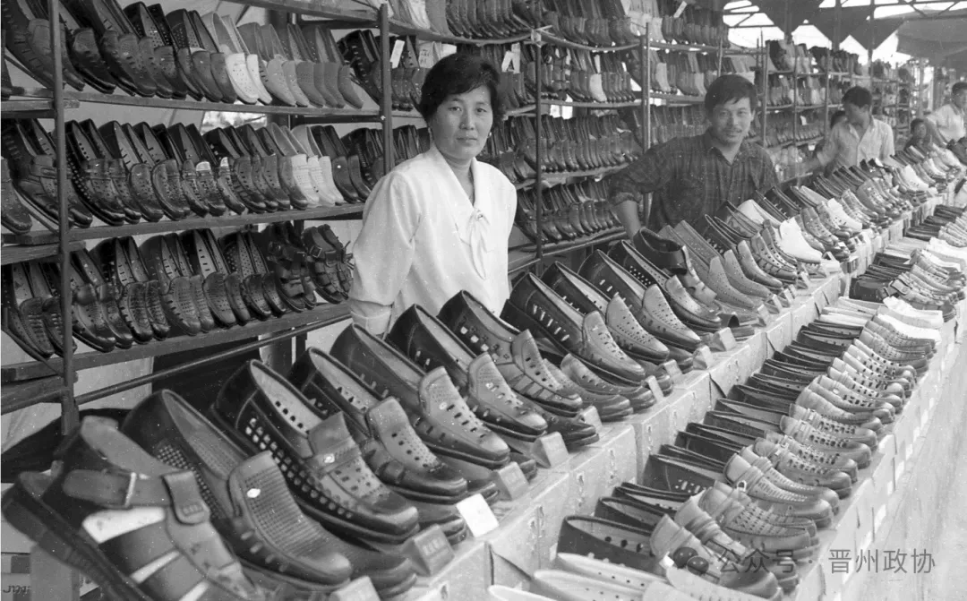 1991年7月,晋州布匹市场内,几位卖皮鞋的个体户在摊位前迎候顾客。此时,关于投机倒把的话题,以及姓资姓社的讨论,已如笑谈一般进入历史。每个个体户都在靠自己的劳动致富,生意做得既红红火火,又堂堂正正。