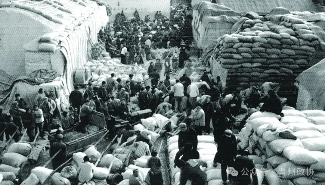 1983年,农民在国有粮站交售公粮。家庭联产承包责任制的推行,极大地调动了农民的生产积极性,粮食连年丰收。到上世纪八十年代末,全县已彻底告别缺粮时代。1989年全县粮食作物总产达到24422万公斤,是改革开放前的1.8倍。