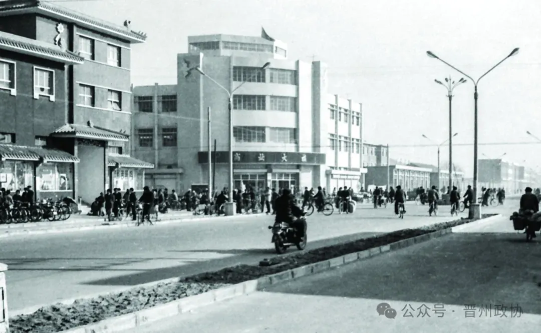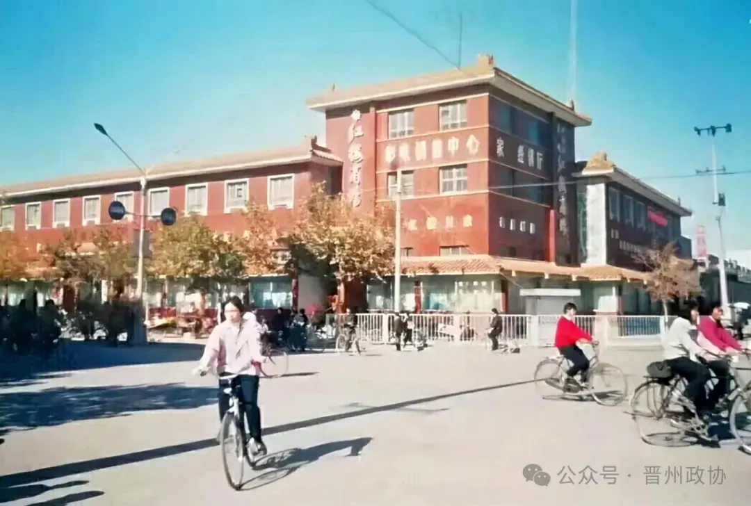 1990年代,红楼商场前的景象。红楼商场于1989年10月开始营业,是改革开放后晋县建设的又一大型商场。